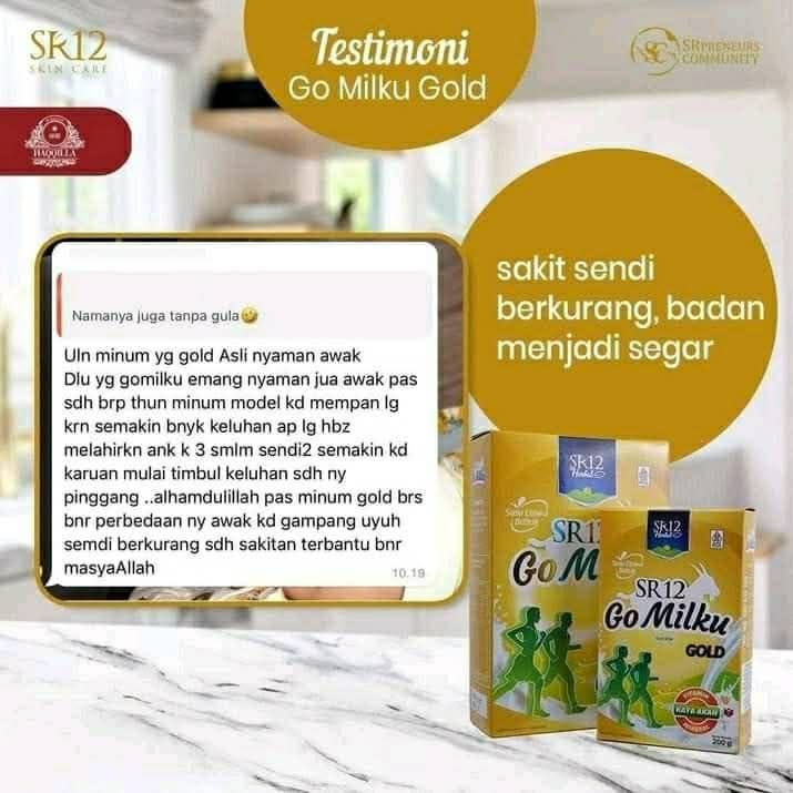 GoMilku SR12 adalah Susu Kambing Etawa herbal yang dijamin tidak bau prengus, nyaman diminum setiap hari dengan formulasi alami yang bisa membantu redakan nyeri sendi dan asam urat.